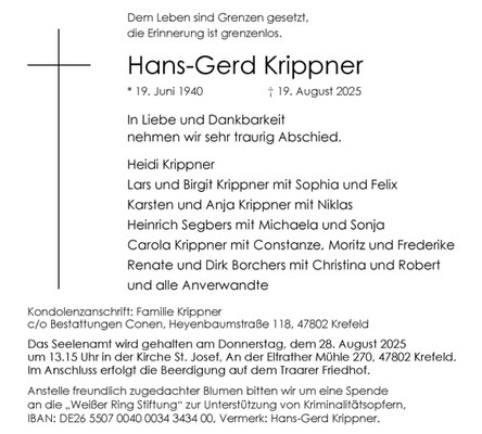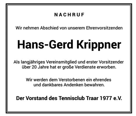 Wir Trauern um unseren Ehrenvorsitzenden Hans Gerd Krippner